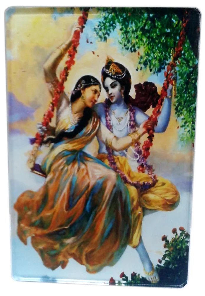 These quality large AcrylicRadha Krishna on SwingStands are 4" x 6". You can put one on an altar in a temple or home. You can also get one for your workspace desk to remind you of Radha Krishna on Swing throughout the day.