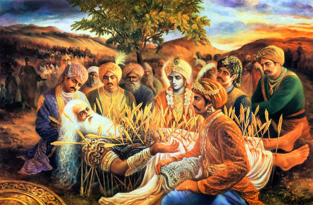 Bhismadeva was the valiant grandsire of the Kuru dynasty (in which the Pandavas appeared), the titular grandfather of all the fighters in the Battle of Kuruksetra, and the chief descendant of King Bharata.