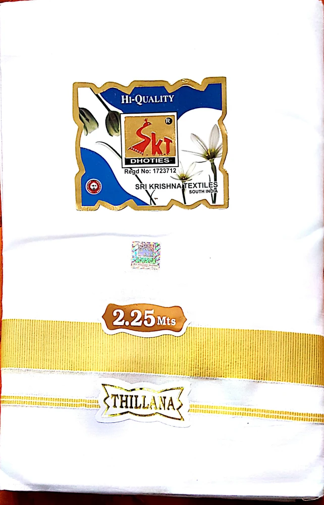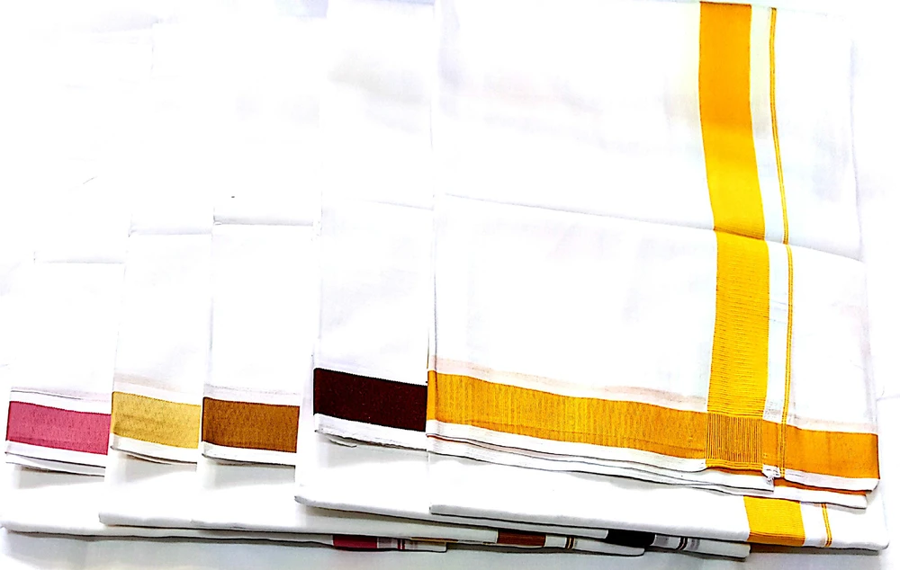 Dhoti White Cotton Thin -- Color Borders