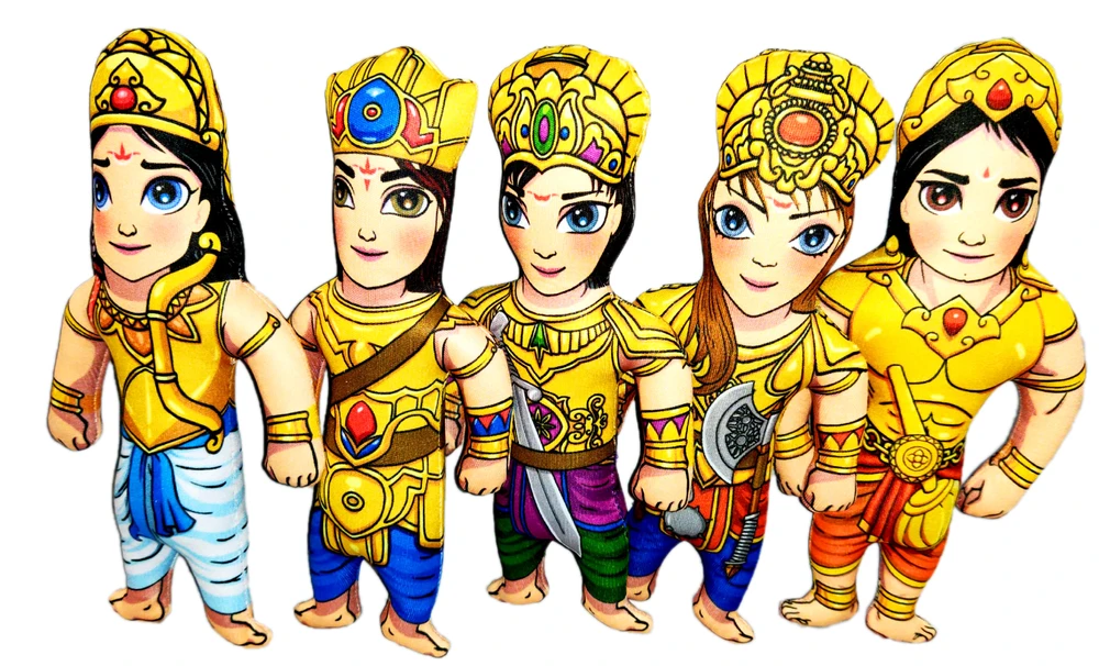The Pandavas are the five sons of Pandu, a king of the Kuru dynasty. Yudhishtra, Bheema and Arjuna were born to Kunti, his first wife. The twins Nakula and Sahadeva were born to his second wife Madri.