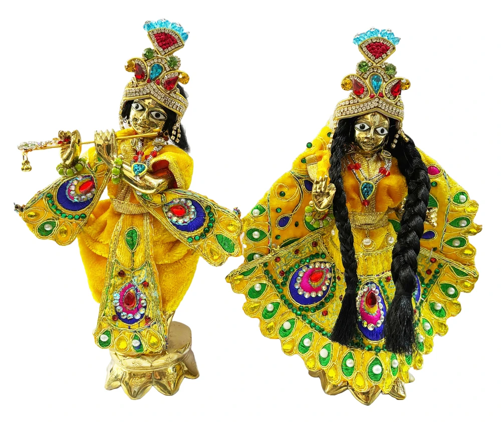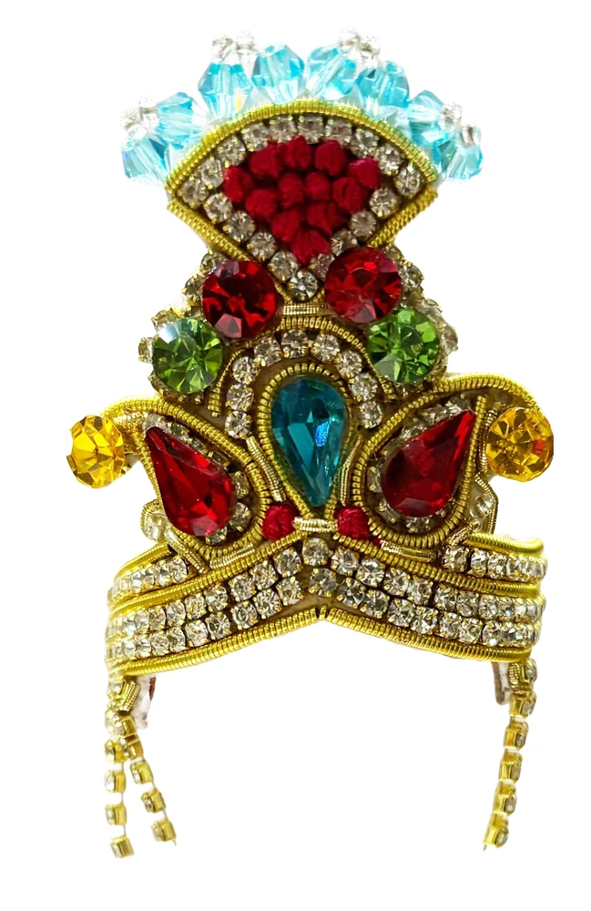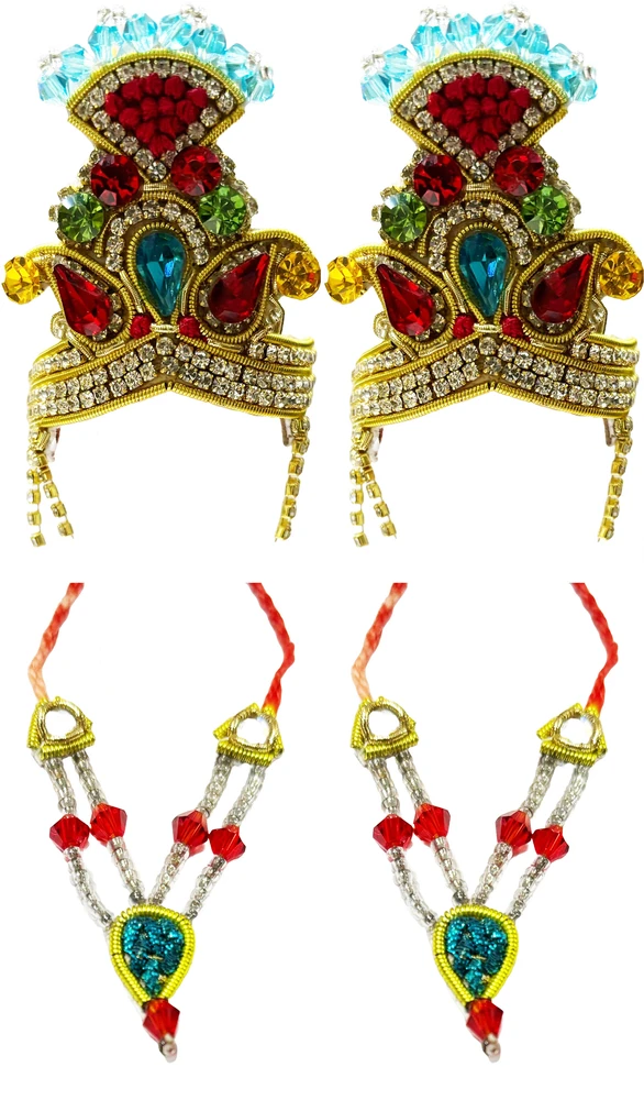 Elevate your deities with this stunning Crown and Necklace Set! Adorned with a dazzling array of colorful diamonds, this exquisite set is perfect for adding a touch of regal splendor to your Radha Krishna or Gaura Nitai idols. The intricate design and vibrant hues will create a captivating and enchanting atmosphere for your deity worship.