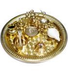 Everything you need to worship Radha-Krishna, Gaura-Nitai and Laddu Gopal Deities including aroti trays, chamara and peacock fans, camphor and sandalwood powder, deity offering plates, conch shells (bathing and blowing) and gopi chandan tilak.