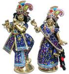 Radha Krishna Deities (Brass 16", Lotus Base)