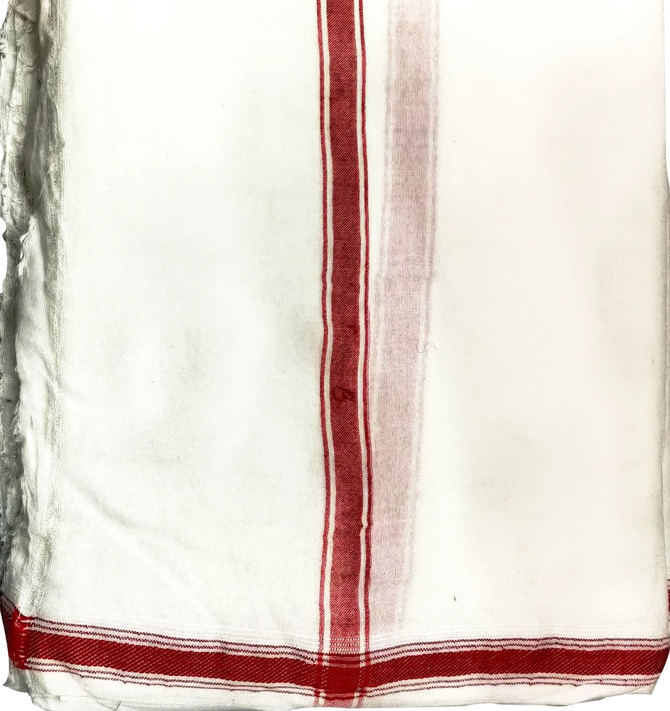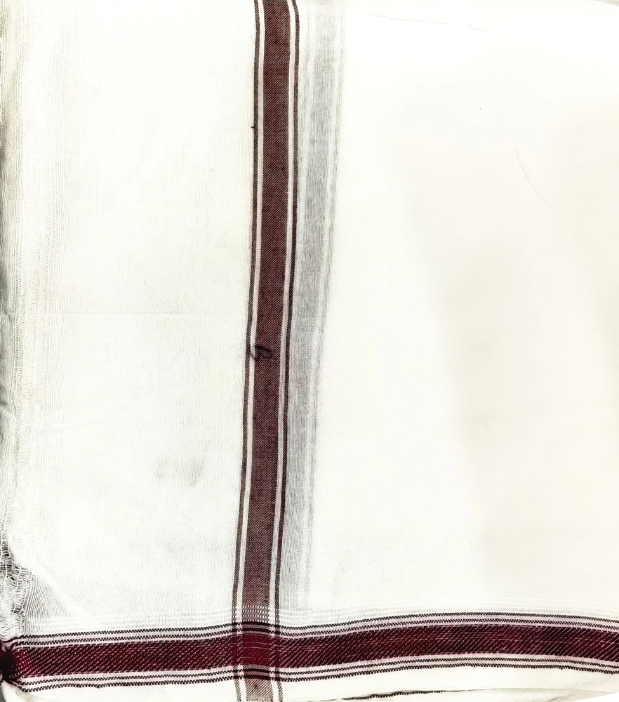 Dhoti White Cotton Thick -- Fancy Color Borders