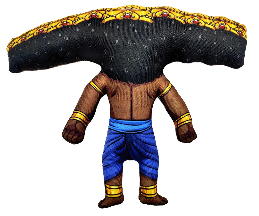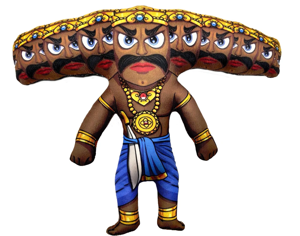 Very cute digital printed stuffed toy. Doll of Ravana Demon with Ten Heads (Dashanan). Ravana is the king of Lanka and he is a great devotee of Lord Shiva. This doll is good for children to play with. Size in approx. 9 inches high.