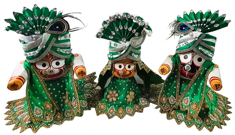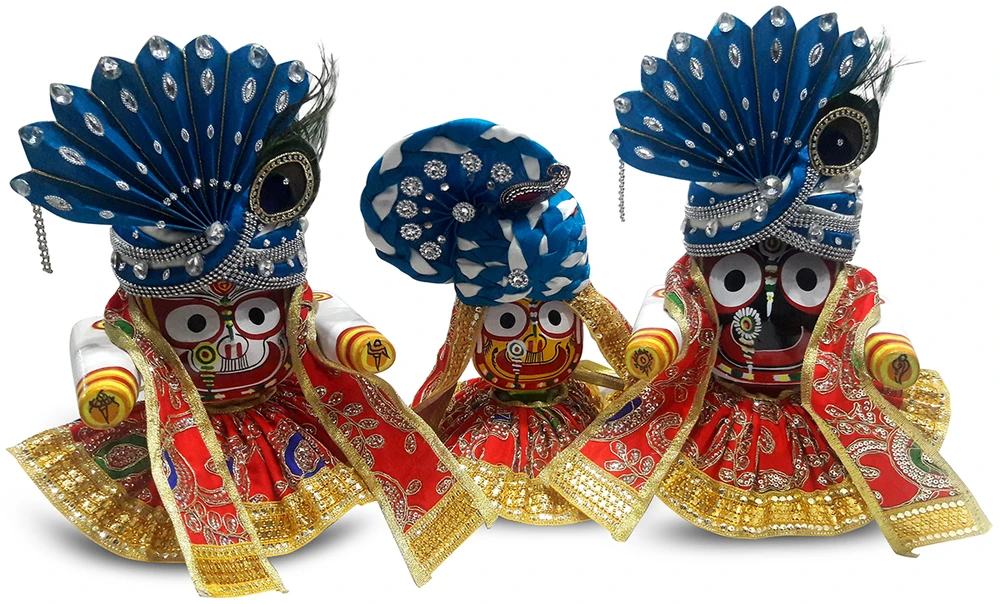Beautiful two color crowns for Jagannatha, Baladeva and Subhadra Deities. Comes in Blue & White, Pink & White, Orange & White and Green & White. Available to fit Jagannatha deities in various sizes including 4, 6 and 8 inches.