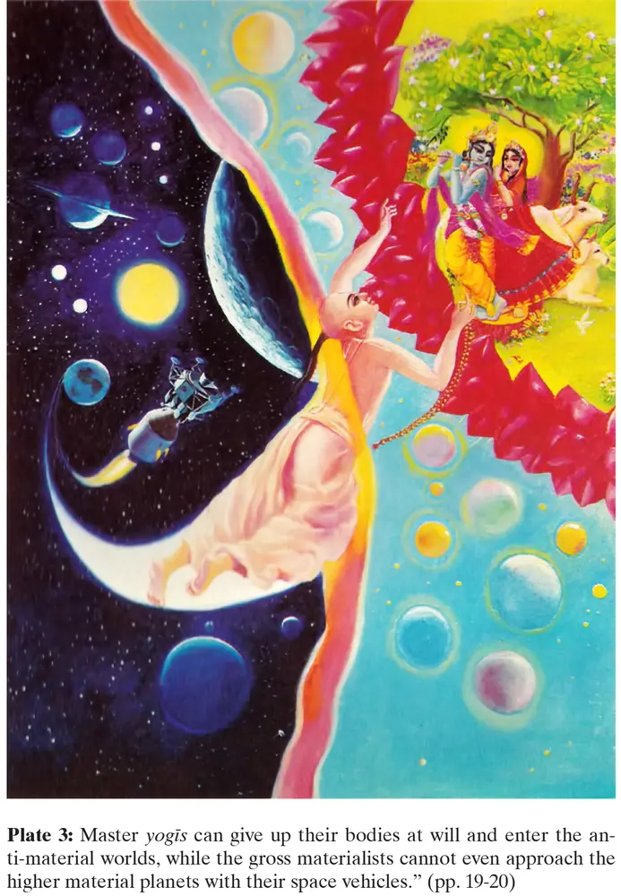 The latest desire man has developed is the desire to travel to other planets. This is also quite natural, because he has the constitutional right to go to any part of the material or spiritual skies. Such travel is very tempting and exciting because these skies are full of unlimited globes of varing qualities, and they are occupied by all types of living entities. The desire to travel there can be fulfilled by the process ofyoga,which serves as a means by which one can transfer himself to whatever planet he likes--possibly to planets where life is not only eternal and blissful, but where there are multiple varieties of enjoyable energies. Anyone who can attain the freedom of the spiritual planets need never return to this miserable land of birth, old age, disease and death.