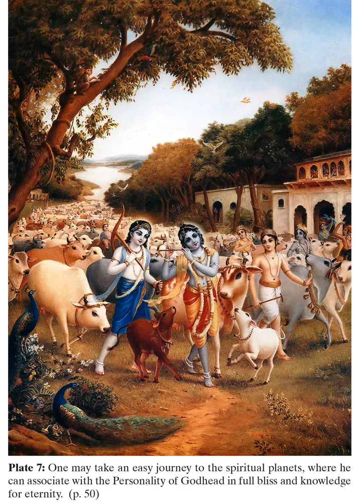 One can attempt to go to any planet he desires, but this is only possible by psychological changes in the mind or by yogic powers. Mind is the nucleus of the material body. Anyone who trains the mind to turn from matter to the spiritual form of the Godhead by performance ofbhakti-yogacan easily attain the kingdom of God in the anti-material sky. Of this there is no doubt.