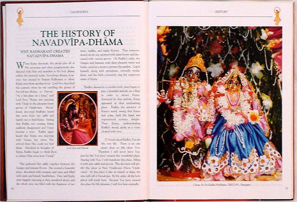 This is the special quality of Navadvipa-dhama. It has foregone all conditions and is freely giving out the highest possible benefit of Krishna Prema that is otherwise unobtainable by the unqualifiedjivasof Kali-yuga. In Navadvipa-dhama, "A person who has committed hundreds of offenses can easily receive the mercy of Nityananda Prabhu and overcome those offenses." Thus the holy name and devotion to Krishna easily blossom within the hearts of those sincerely seeking this mercy overflowing in Sri Navadvipa-dhama. It is this unlimited and causeless mercy of Sri Caitanya Mahaprabhu that the author wishes to impart to the readers and the ever-increasing number of visitors and pilgrims coming to Navadvipa-dhama.