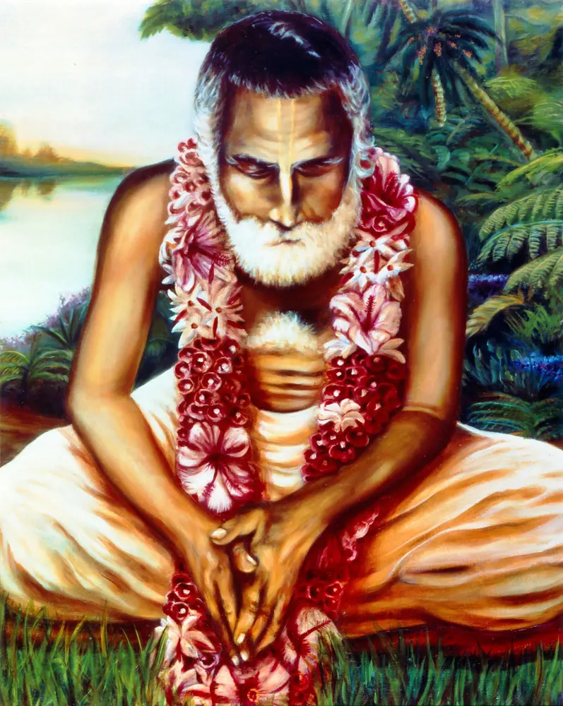 In 1908 Gaura Kisora Dasa Babaji Maharaja lost his sight. He refused attempts by Varsabhanavi-devi-dayita Dasa to take him to an eye specialist, preferring instead to chant and worship Krishna. He stopped traveling at this point. He would sit in his bhajana-kutir deeply absorbed in Krishna's pastimes.