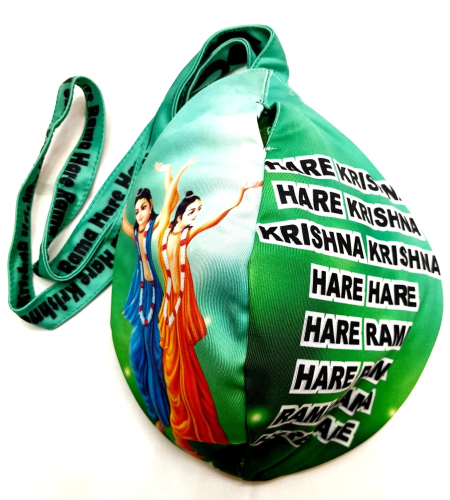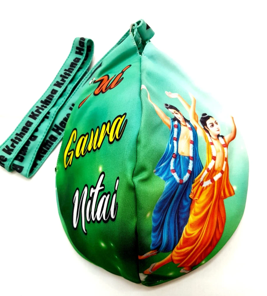 Gaura-Nitai with beautiful picture of Lord Caitanya and Lord Nityananda. Stunning colorful standard size bead bag with digital printing on all 3 sides and Hare Krishna Mantra printed on the strap. First class quality cotton japa bead bag.