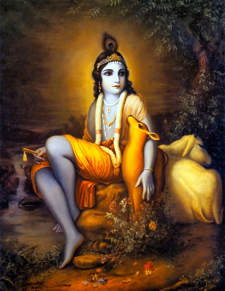 Therefore, Krishna is addressed as Madana-mohana, "the attractor of Cupid"; Govinda, "He who gives pleasure to the cows"; Gopala, "the protector of the cows"; Yasodanandana, "the dear son of Mother Yasoda"; Nandanandana, "the dear son of Nanda Maharaja" and Gopinatha, "the Lord of the cowherd girls".