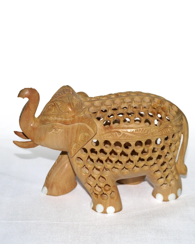 Well-crafted elephant figure. You can look through the holes in the body of the elephant to see another, rear-facing elephant inside.