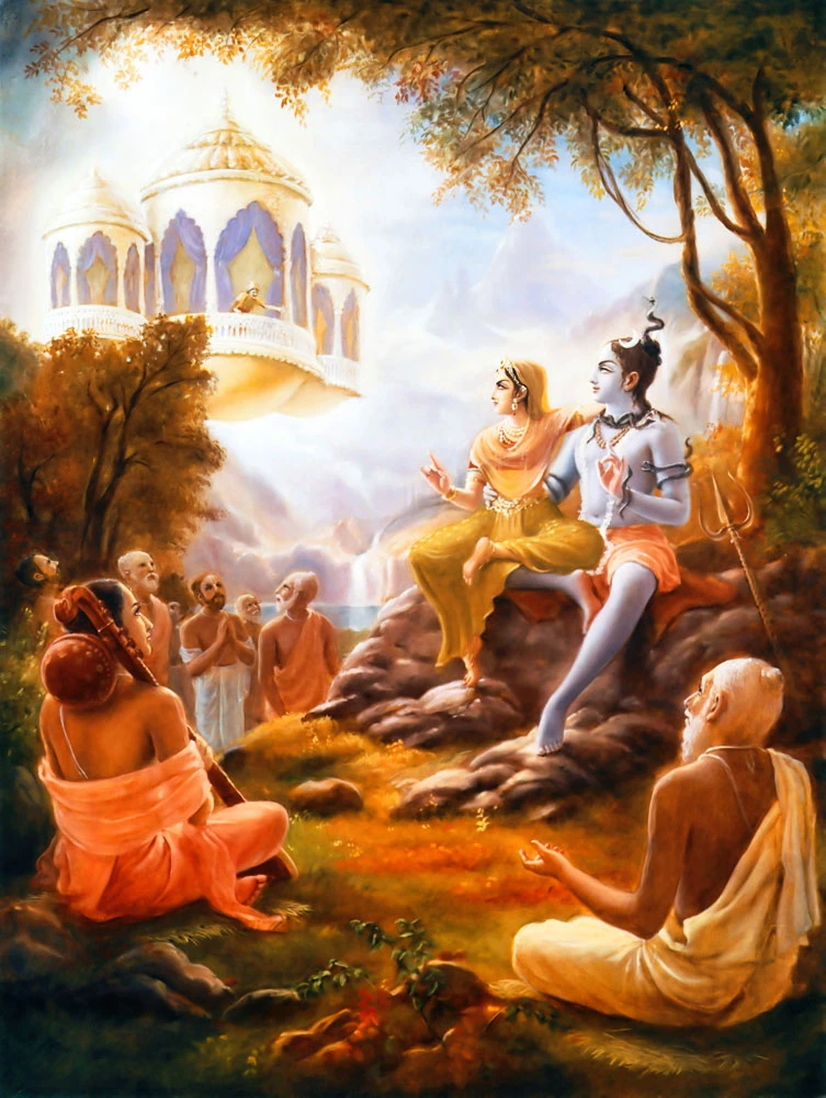 Citraketu's statements were not at all pleasing, however, and therefore the goddess Parvati, being very angry, cursed Citraketu, who had thought himself better thanLord Siva in controlling the senses: "This Citraketu is the lowest of ksatriyas, for he has impudently overridden Brahma and the other demigods by insulting Lord Siva, upon whose lotus feet they always meditate. Lord Siva is personified religion and the spiritual master of the entire world, and therefore Citraketu must be punished. O impudent one, my dear son, now take birth in a low, sinful family of demons so that you will not commit such an offense again toward exalted, saintly persons in this world."