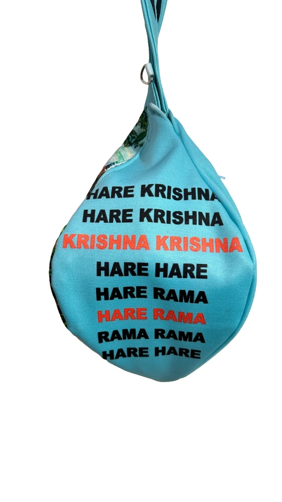 This stylish and compact japa bead bag is crafted from first-class quality cotton. It's perfect for storing and carrying your japa beads while on the go. The light blue fabric features Krishna and Balaram, on one side and the Mahamantra printed on the other two sides. The sturdy drawstring closure and zipper keep your beads secure, while the strap makes it easy to wear around your neck or wrist. Lightweight and discreet, it's the perfect companion for meditation and Nama Japa.
