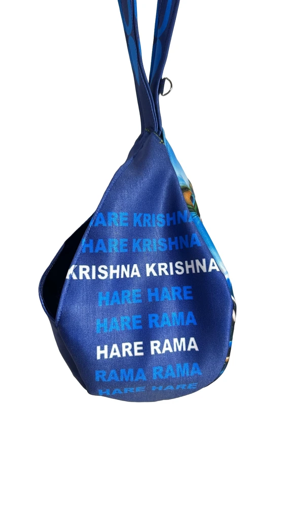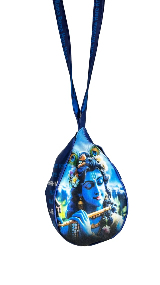 This stylish and compact japa bead bag is crafted from first-class quality cotton. It's perfect for storing and carrying your japa beads while on the go. The blue fabric features Krishna Playing Flute on one side and the Mahamantra printed on the other two sides. The sturdy drawstring closure and zipper keep your beads secure, while the strap makes it easy to wear around your neck or wrist. Lightweight and discreet, it's the perfect companion for meditation and Nama Japa.