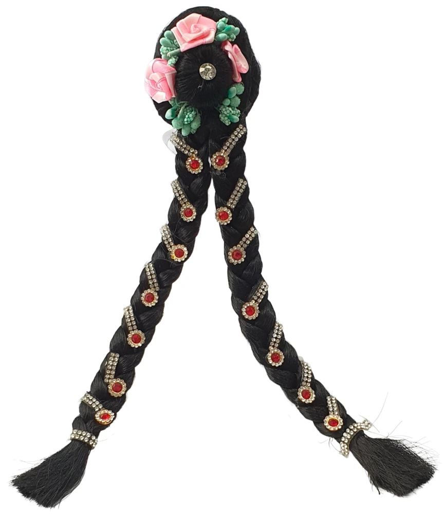 Krishna's Curly Hair & Radharani's Decorated Double Braided Hair WITH BUN / Wigs (set of 2) Double Braided Hair with bun for your Radharani!