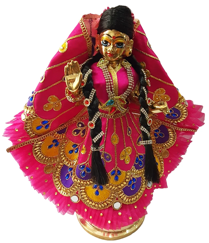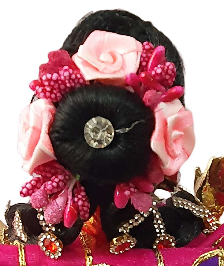Krishna's Curly Hair & Radharani's Decorated Double Braided Hair with bun. Very practical and attractive hair for your Radha Krishna Deiteis. A available in many sizes. Perfet for festivals, special occasions, and also every day.