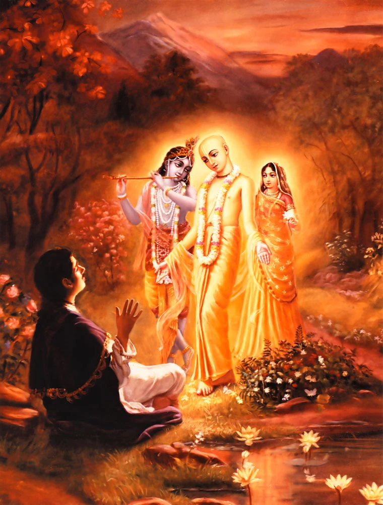 Lord Sr Krishna is the reservoir of all pleasure, and Srimati Radharani is the personification of ecstatic love of Godhead. These two forms had combined as one in Sri Caitanya Mahaprabhu. This being the case, Lord Sri Caitanya Mahaprabhu revealed His real form to Ramananda Raya.