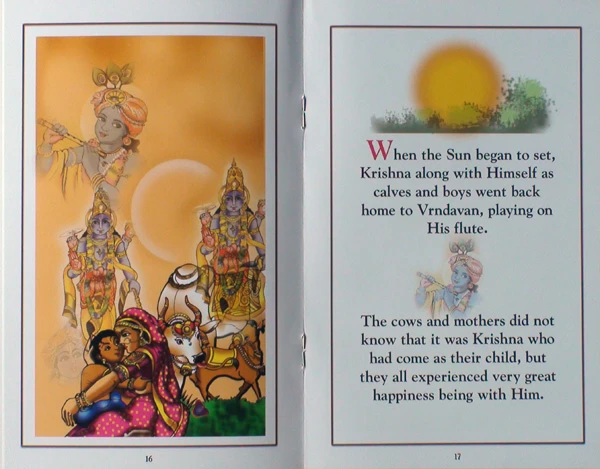 Krishna smiled and expanded Himself as all those calves and boys that Brahma had hidden. Each gopa and each calf looked exactly like the originals.