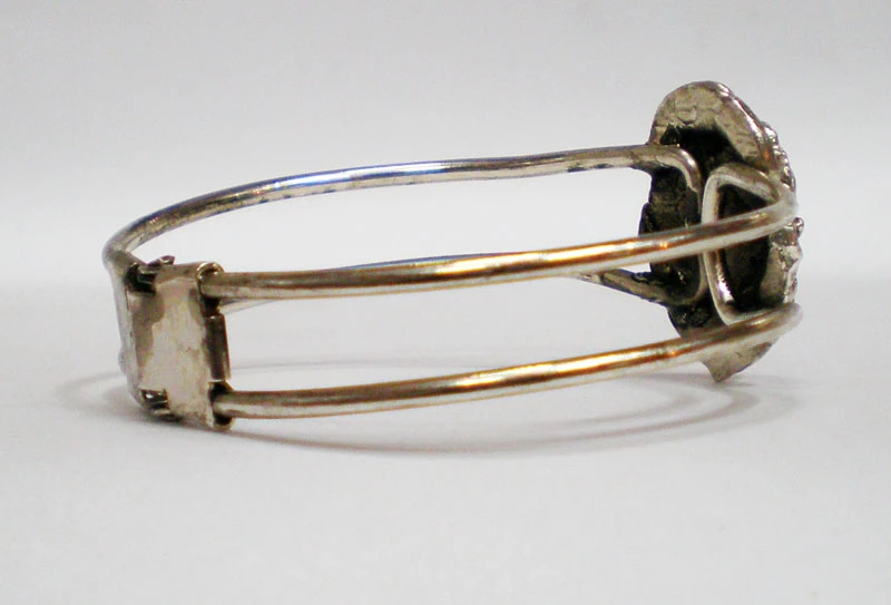 The bracelet is made from what is called "White Metal", or "Zasta" in Hindi. White metal is an alloy  typically made up of combinations of antimony, tin, lead, cadmium, bismuth, and zinc. These bracelets are then electroplated with a pure silver coating, and then it is oxidised to give it an antique look.
