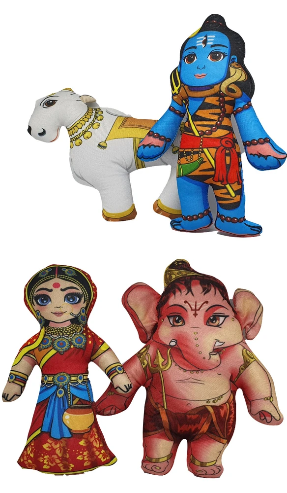 Shiva’s Family set of stuffed toys for children includes Lord Shiva and his wife Parvati with Ganesha & Nandi his bull-carrier. Size: (approx) 7.5” x 5”
