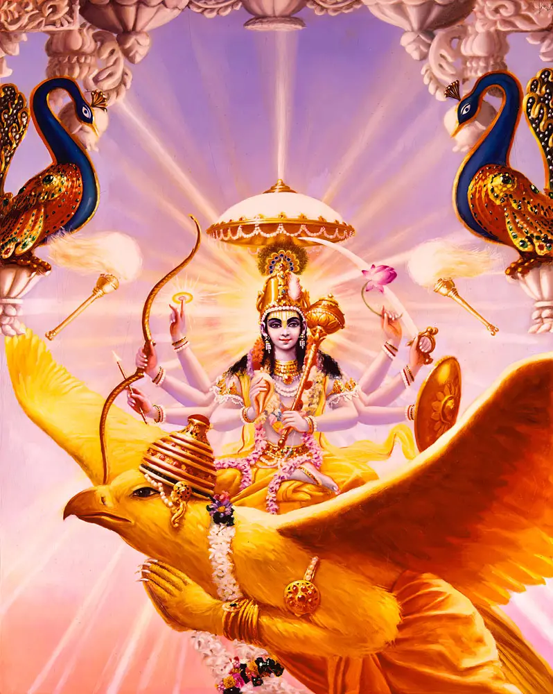 In the sastras it is said that Garuda, along with Lord Shiva and Ananta, are all very powerful incarnations of the Brahman feature of the Lord. Many carnivorous birds are descended from Garuda, who is the enemy of the snakes.