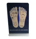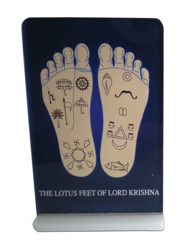 These quality Lotus Feet of Krishna Stands are 3.75" x 2.75" and made of acrylic. They can be put on an altar in a temple or home. You can put it on a desk in your workspace to remind you of Sri Krishna throughout the day.