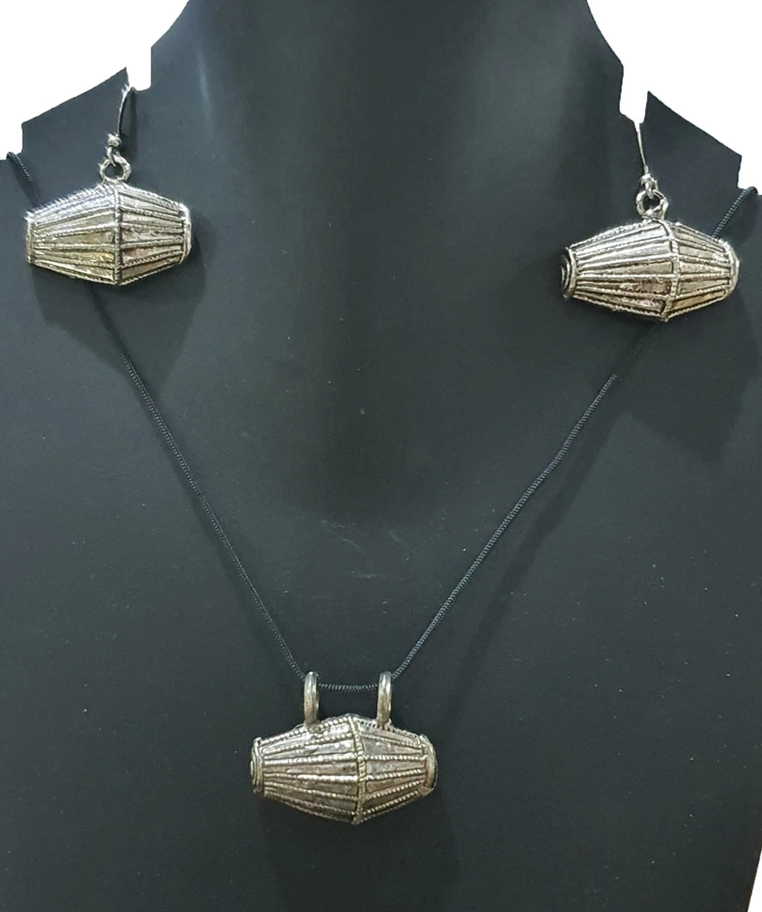 Mridanga Set - Pair of Earrings & Matching Pendant with Black Thread