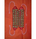This is a three line Red ankle bell pair with each ankle bell having about 30 brass bells. This item has high quality big brass bells on the cushioned cloth pad - professional quality ankle bell... Very good sound !!! There are strings on each end of the Ankle Bell with which the performer need to tie the ankle bell to their ankles - not buckle type.