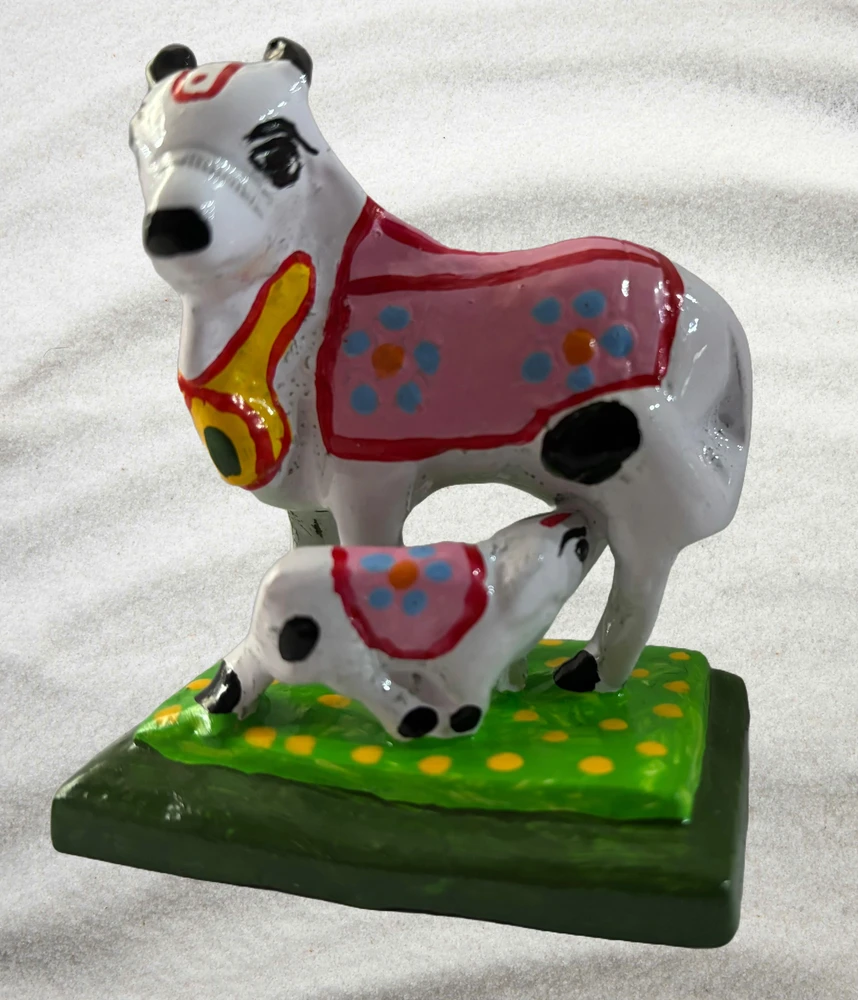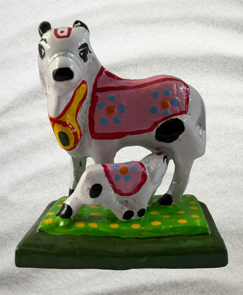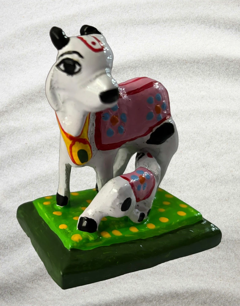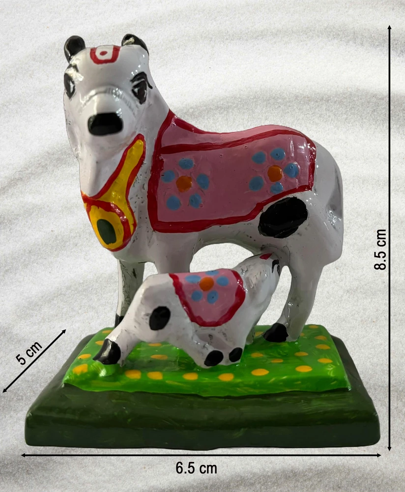 This beautifully craftedPainted Brass Cow with Calf, weighing280 grams, is a symbol of divinity and prosperity. Made ofsolid brassand measuring8.5 cm x 6.5 cm x 5 cm, it features intricate hand-painted details. Perfect for home décor, temples, or as a thoughtful gift, it adds charm and cultural significance to any setting.