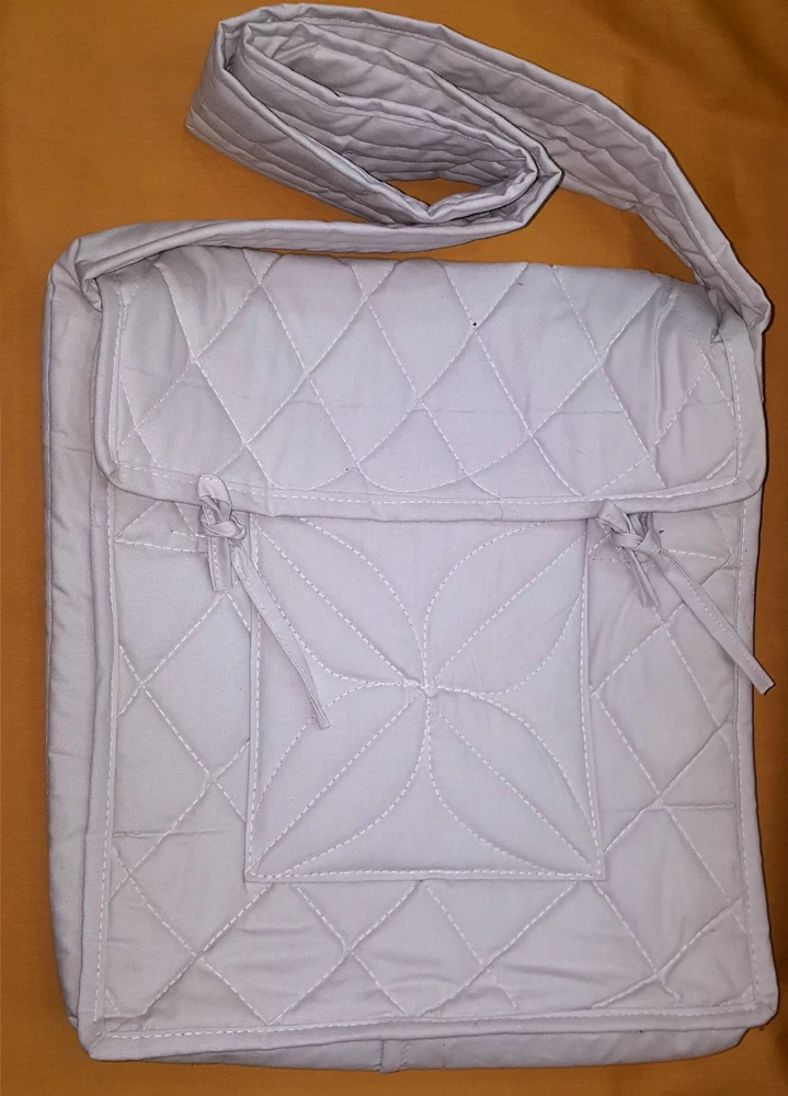 Deluxe extra-strong double-padded thick cotton book bag / parikrama bag. This is the perfect bag to keep books or other item in while wearing dhoti / kurta. In India this is the perfect bag to use while on parikrama. Size is 13 inches by 13 inches.