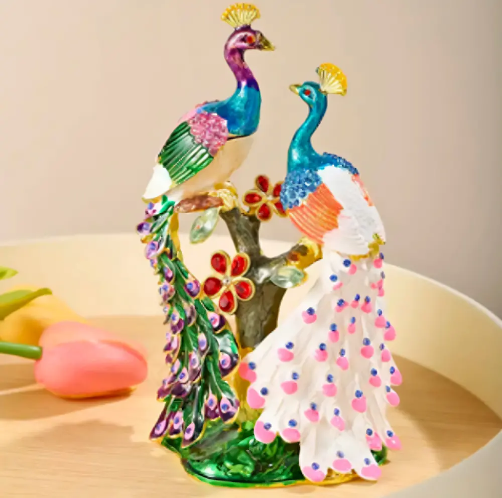 Peacock Pair Trinket Box (White)Peacock Pair Trinket Box (White)Peacock Pair Trinket Box (White)