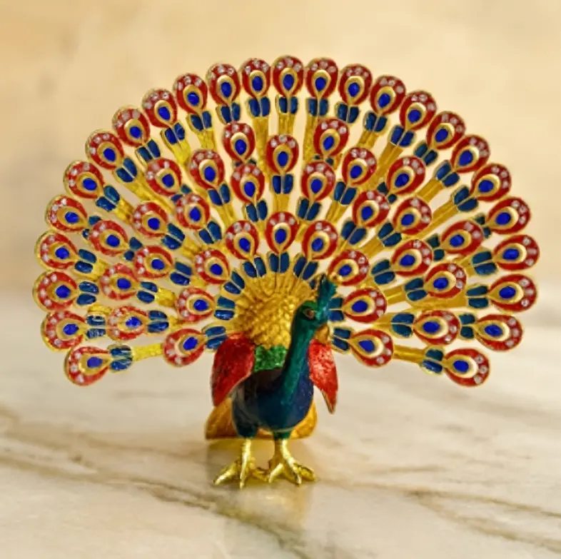 Beautifully handcrafted Meena Peacock, perfect as a home décor piece or multipurpose storage box. Use it to keep small valuables, attar cotton, or trinkets. Made with vibrant enamel colors and fine detailing, this piece adds elegance to any space.