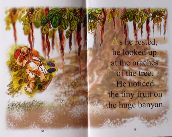 Ramu lay down on the cool grass, reveling in the shade of the old banyan tree. He thought, "Surely the Lord has made a big mistake! This huge tree has such tiny fruits."