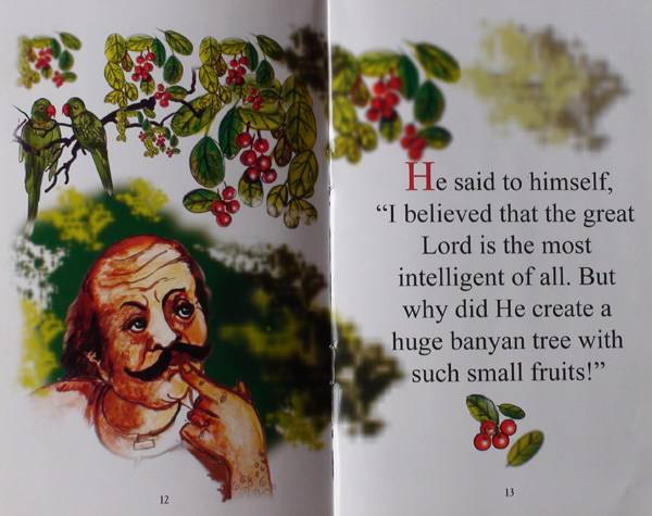 He folded his hands in prayer and thanked the Lord, "You are the wisest! You made this great banyan tree for weary travelers like me to rest under but made its fruit tiny so they may not hurt anyone resting in its shade. I shall never doubt your creation again. You are the perfect creator."