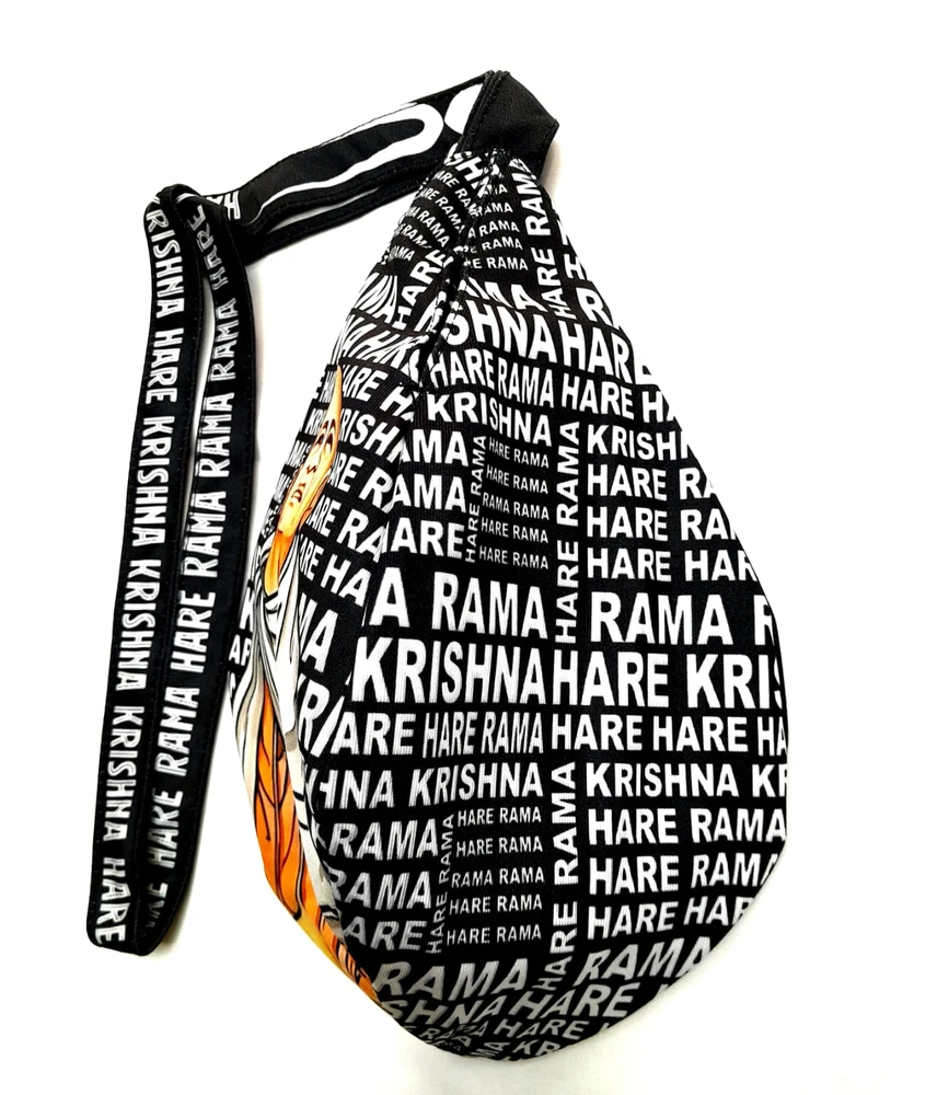 Prabhupada picture with lots of Hare Krishna mantra in the background. Stunning colorful standard size bead bag with digital printing on all 3 sides and Hare Krishna Mantra printed on the strap. First class quality cotton japa bead bag.