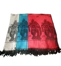 Radha-Krishna chadar. Jute. Very soft feeling. Size:aprox. 28 inches by 80 inches.