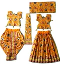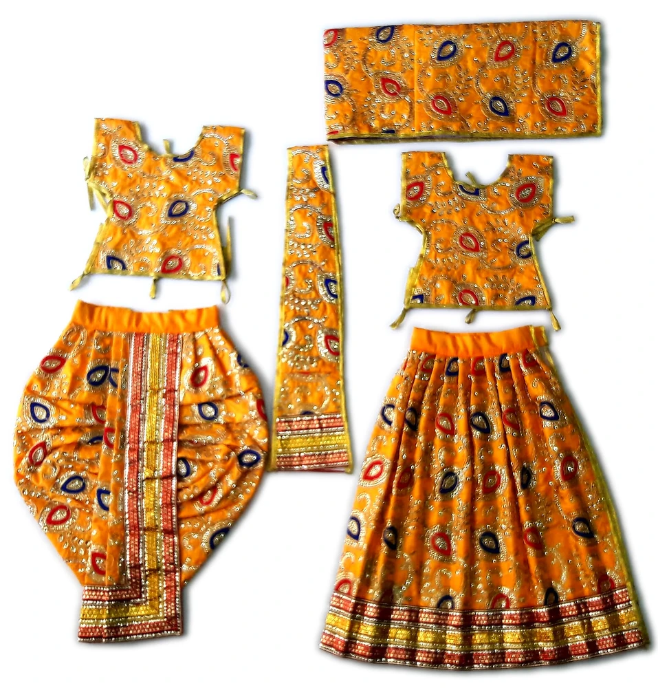 Outfits for Radha Krishna Dieties available in many sizes and colors. These are nice hand made dresses with embroidery. Deity size is measured from the bottom of Krishna's base to the top of His head. Sizes are intended for brass Deities.