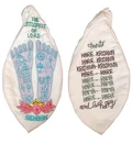 Embroidered japa bead bag with Radharani's lotus feet on the front and the full Hare Krishna maha-mantra on the back. Large size. Includes zip pocket.