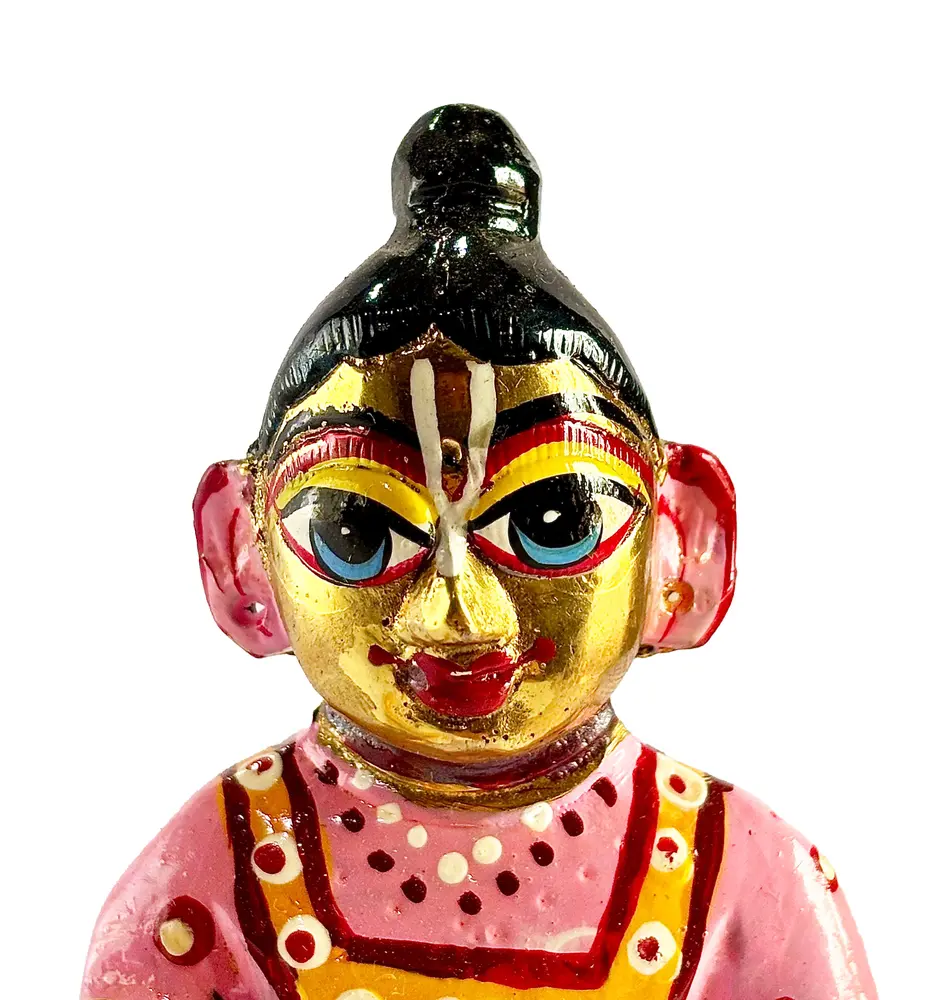 Each detail, from the delicate facial features to the intricate clothing and jewelry accents, reflects the craftsmanship and devotion poured into its creation. The deity’s bright hues of gold, pink, and red make it a captivating centerpiece for your altar, temple, or spiritual space.