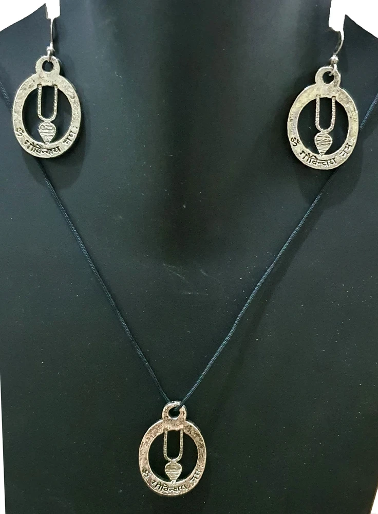 Sanskrit Om Govinday Set - Pair of Earrings & Matching Pendant with Black Thread