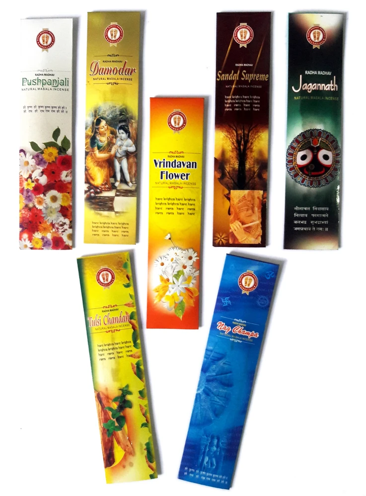 This is an awesome collection of inscence. 100 percent natural masala agarbatti. Less smoke and lasting fragrance. My favourite from the collection is Kesar chandan, vrindavan flower and Radha madhavThis is an awesome collection of inscence. 100 percent natural masala agarbatti. Less smoke and lasting fragrance. My favourite from the collection is Kesar chandan, vrindavan flower and Radha madhavRead less