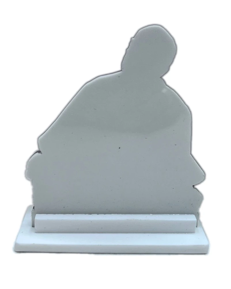 Srila Prabhupada cutout acrylic stand. Made from acrylic and fiber and is good for keeing on the altar or desk.
