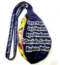 Srimati Radharani picture with Hare Krishna mantra. Stunning colorful standard size bead bag with digital printing on all 3 sides and Hare Krishna Mantra printed on the strap. First class quality cotton japa bead bag.