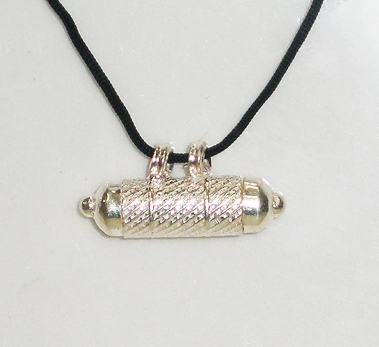 These beautiful sterling silver tube pendants are often called Kavachas because devotees sometimes put a rolled up scroll that has written on it the Narasimha Kavacha prayer for protection.