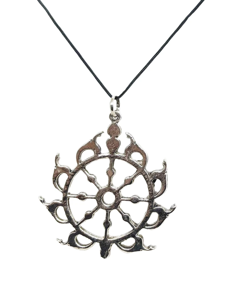 Sudarshan Chakra Big White Metal Pendant with Black Thread