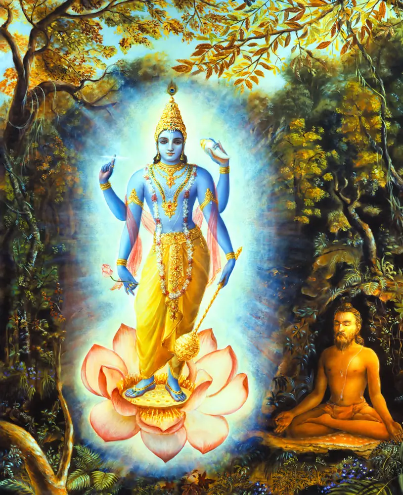 "Always eager to bestow His blessings upon His devotees, He is most charming to look at, for His serene aspect gladdens the eyes and souls of those who behold Him in the ecstatic trance of meditation."