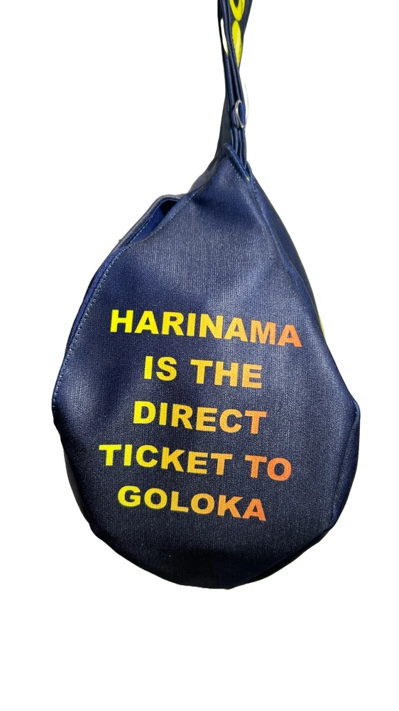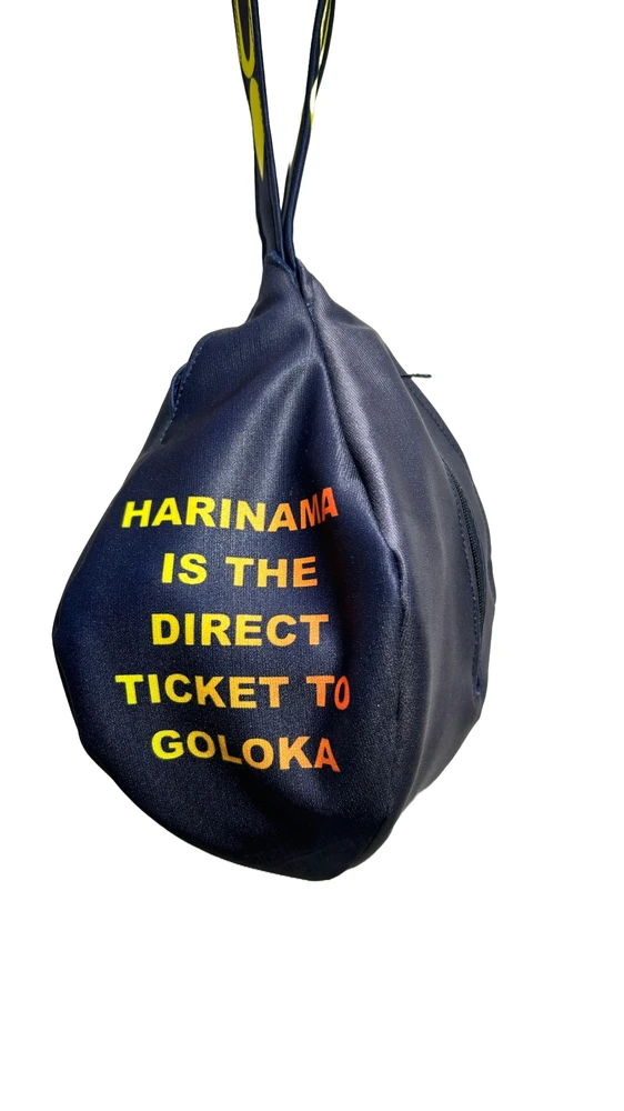 This stylish and compact japa bead bag is perfect for storing and carrying your japa beads while on the go. The dark blue fabric features a vibrant yellow tilak on one side and the message "Harinama is the Direct Ticket to Goloka" on the other two side. The sturdy drawstring closure and zipper keep your beads secure, and the strap makes it easy to wear around your neck or wrist. Lightweight and discreet, it's the perfect companion for meditation and Nama Japa.