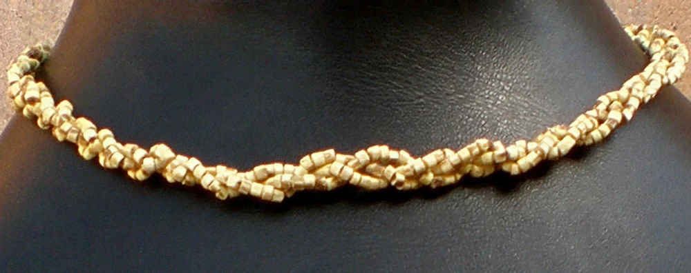 Three strands of tulsi beads twisted together to produce a stunning effect. Approx 16 inches long.